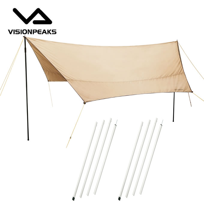 重さは4.4キロ。そこまで重くありませんが、ポリエステルだけのタープに比べたら多少重みがあります。付属品は、タープの他にロープとペグ、収納ケース。ポールは別途購入する必要があります。(2018年追記:ポールセットも販売されています)